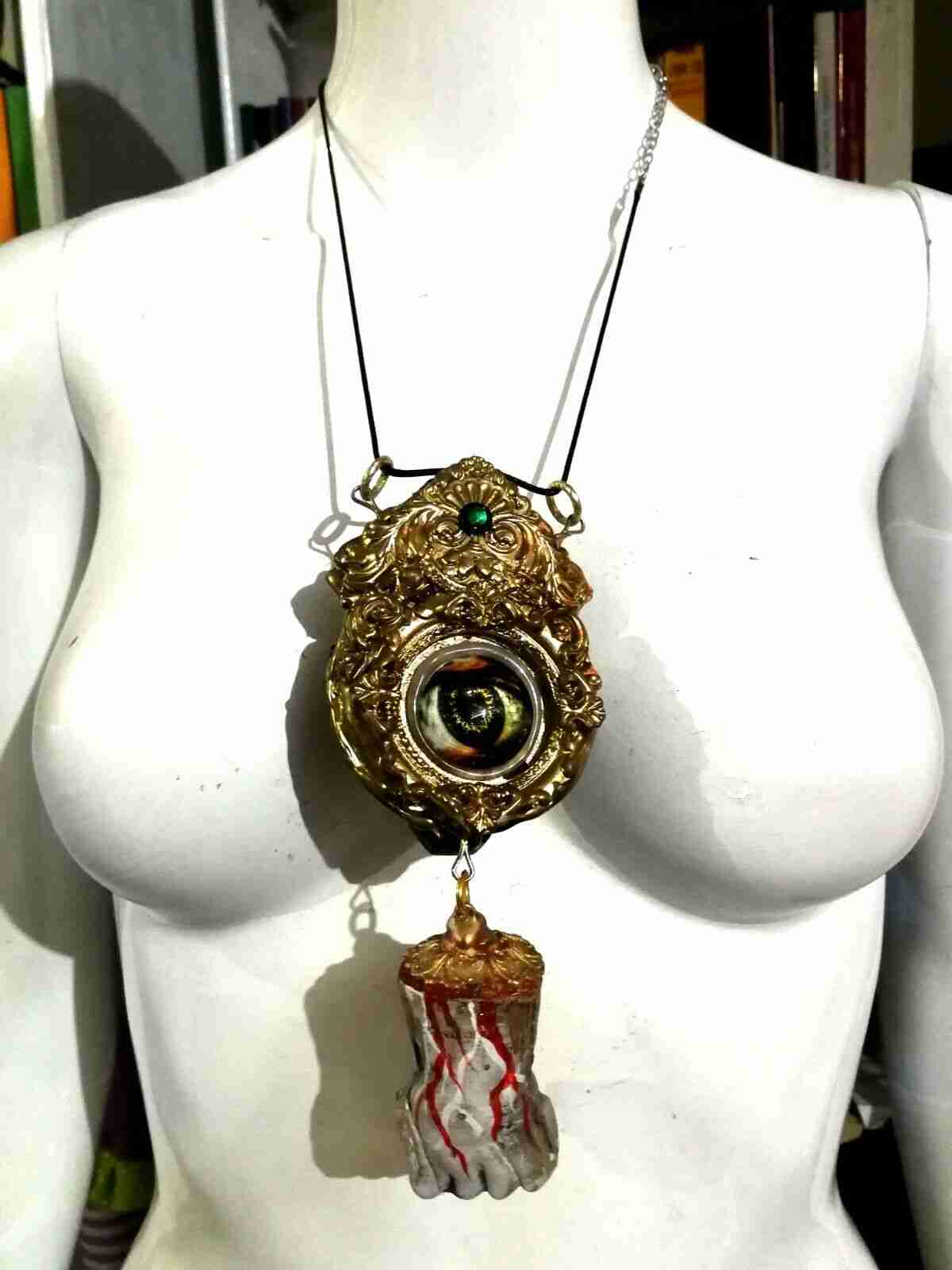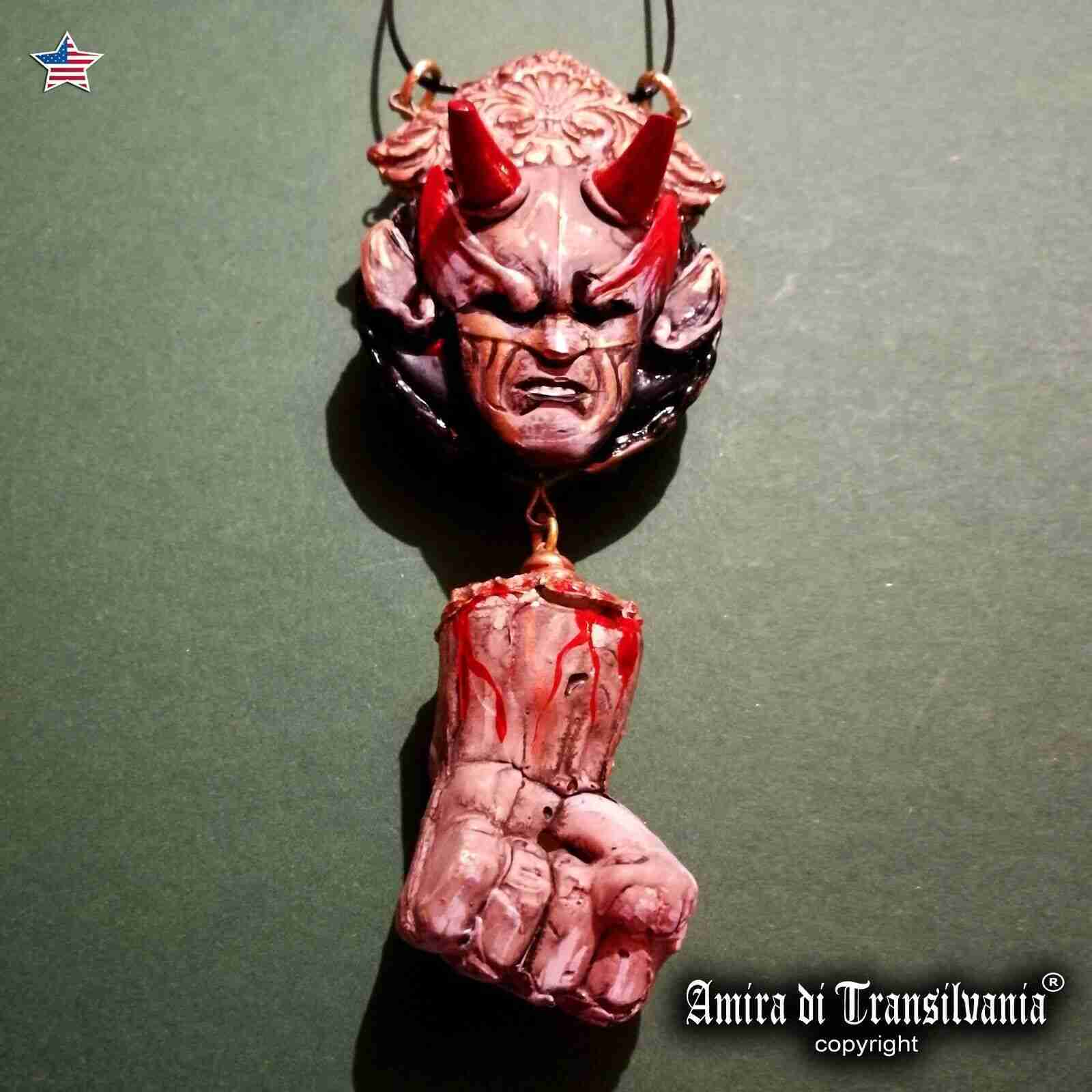 satanic jewelry talisman necklace amulet pendant locket lucifer left path hand original talisman art jewel, rare necklace, italian design, 100% handmade in Italy and copyright !!! LEGEND : Moloch was used as a term for an analogous Phoenician ritual, known mainly through Greco-Roman authors and in connection with the city of Carthage. The Carthaginians, in particular, worshiped the god Ba’al Hammon, who in the interpretatio graeca was identified with Kronos, the devouring god of his children. Moloch is the deity of Sacrifice and his talisman is widely used in black magic rituals. 1152 / 5000 Risultati della traduzioneRisultati della traduzioneVatika is an Etruscan goddess, and it seems that from her name and in her memory today one of the names of the most powerful institutions in the world has been handed down: the VATICANBut why does the Church Center associate her name with a real DEMON? She appears as a polyad deity (protector of the city, polis).size:6 x 6 cm, unique and original handmade artwork, small handcrafted sculpture, 100% made in ItalyTECHNICAL DETAILS Talisman Material: “ Bisque ” resin & ceramic. 10 x 17 centimeters Sculpture in resin biscuit beads you work with a modeling and manual firing with thread 100% Italian product 100% handcrafted graphics Receive the signed talisman, carefully packed and accompanied to the Certificate of guarantee and originality with your name. Talisman design is taken from an original artwork that you can learn by reading the information in my blog AMIRA DI TRANSILVANIA.
